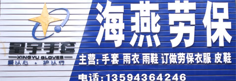 永益路201号 海燕劳保 批发各类手套、工作服、道路消防设施